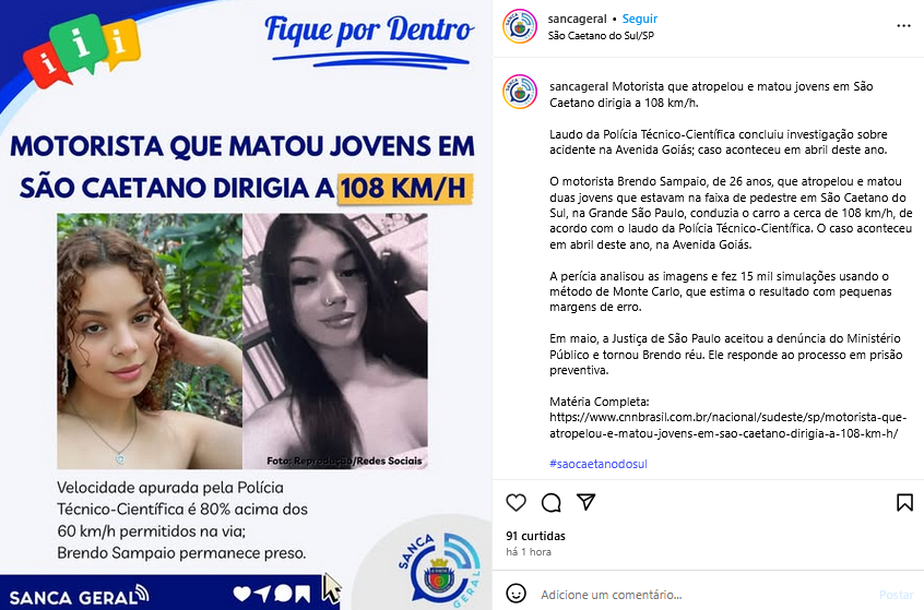 Motorista que matou jovens em São Caetano dirigia a 108 km/h