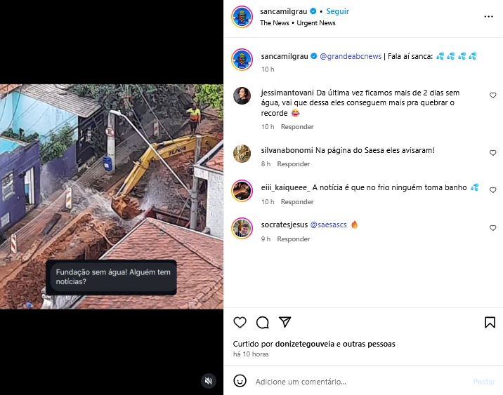 Fundação sem água? Alguém tem notícias?