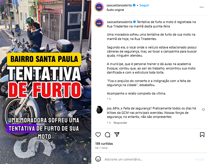 Veículo: Online -> Instagram -> Instagram São Caetano Alerta