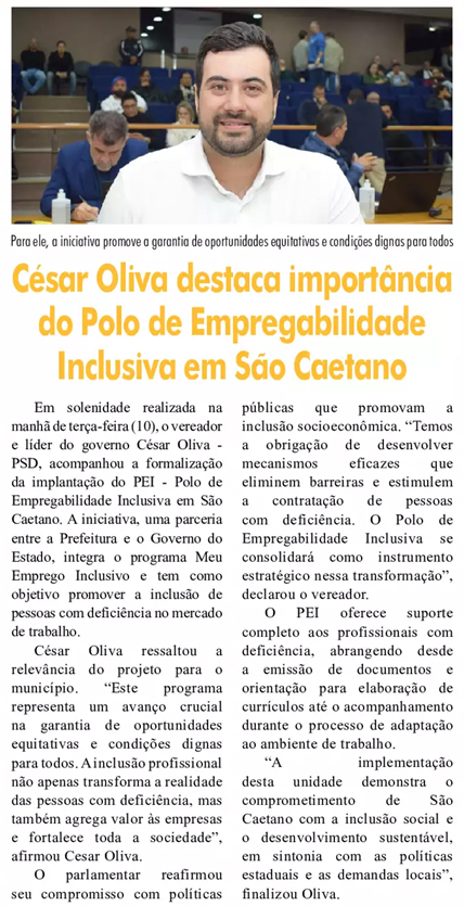 César Oliva destaca importância do Polo de Empregabilidade Inclusiva em São Caetano