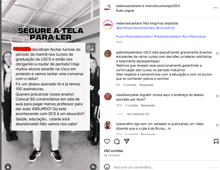Nós exigimos resposta: USCS fechará cursos matutinos