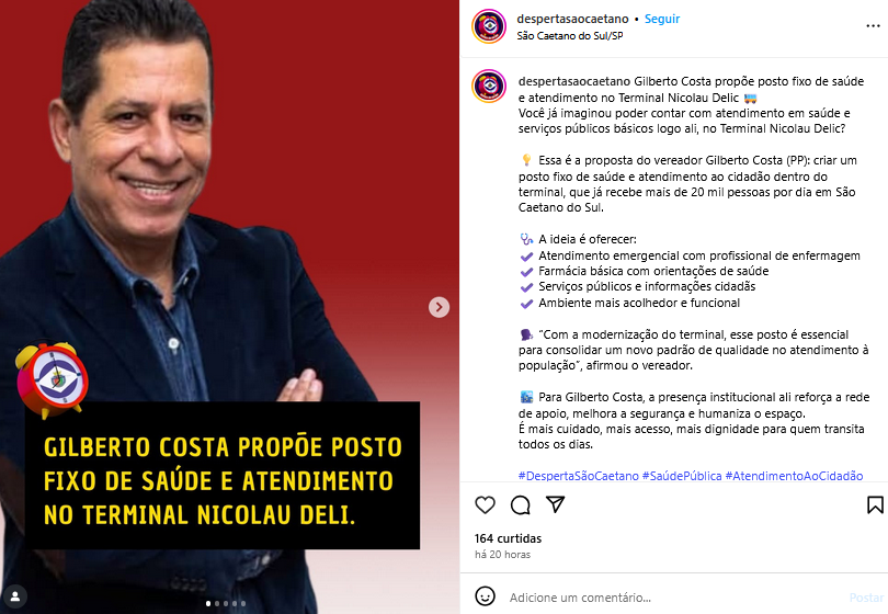 Veículo: Online -> Instagram -> Instagram Desperta São Caetano