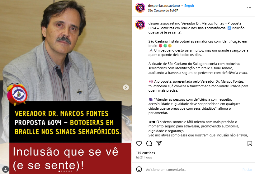 Vereador Dr. Marcos Fontes proposta 6094 - botoeiras em braille nos sinais semafóricos