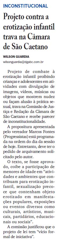 Projeto contra a erotização infantil trava na Câmara de São Caetano