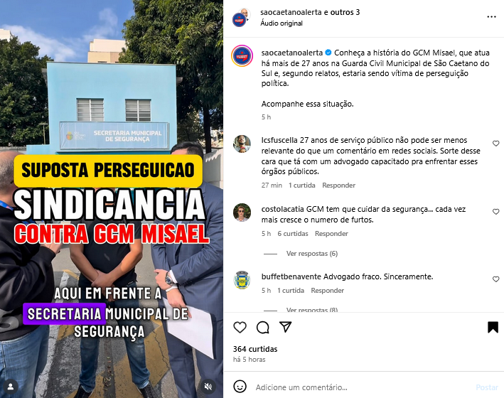 Suposta perseguição sindicância contra GCM Misael