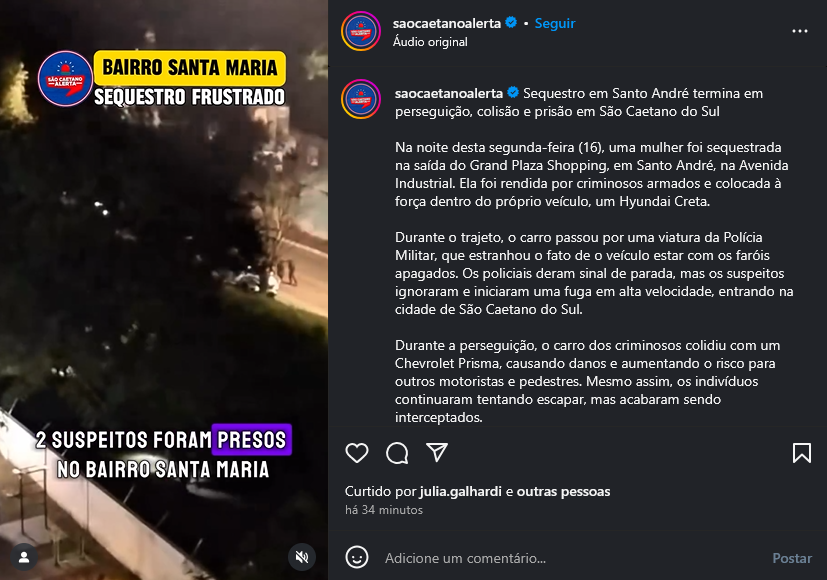 Veículo: Online -> Instagram -> Instagram São Caetano Alerta