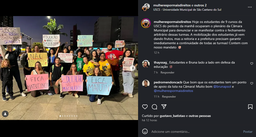 Estudantes da USCS fizeram manifestação contra fechamento arbitrário de turmas do período matutino