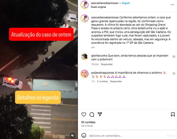 Veículo: Online -> Instagram -> Instagram São Caetano Depressão