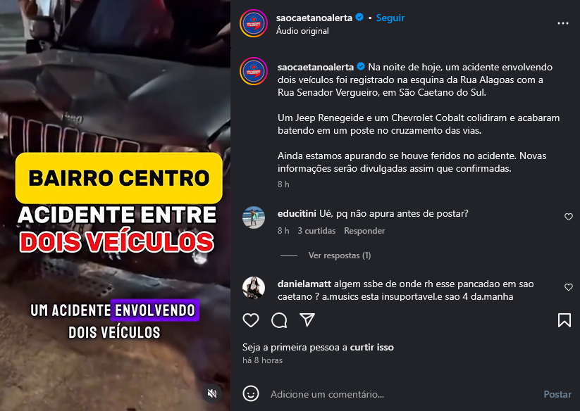 Veículo: Online -> Instagram -> Instagram São Caetano Alerta
