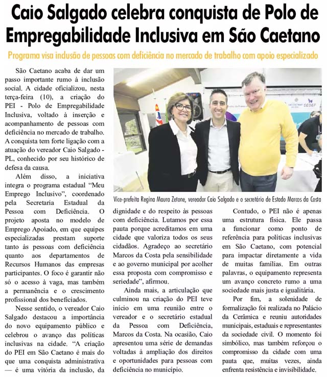 Caio Salgado celebra conquista de Polo de Empregabilidade Inclusiva em São Caetano