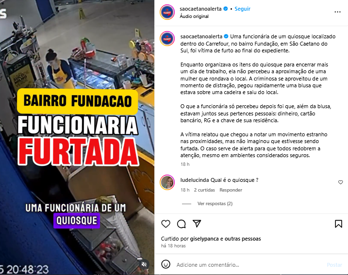 Veículo: Online -> Instagram -> Instagram São Caetano Alerta