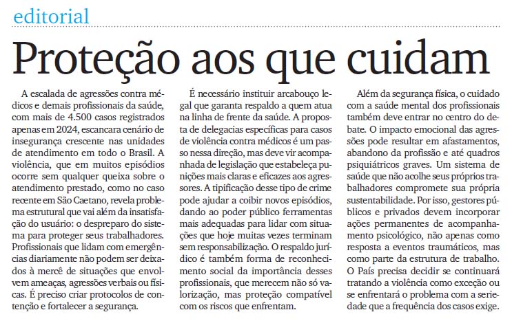 Editorial - Proteção aos que cuidam