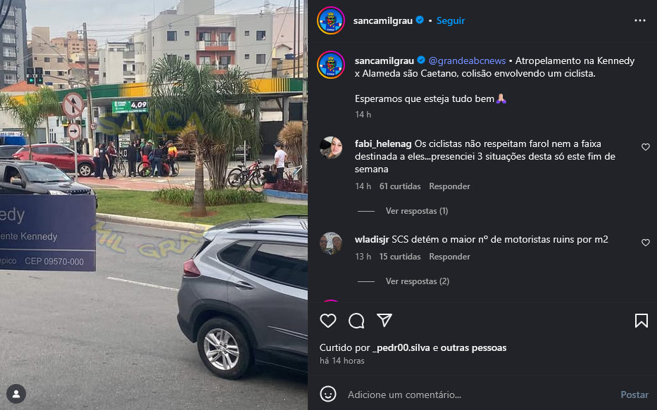 Atropelamento na Kennedy x Alameda São Caetano; colisão envolvendo um ciclista