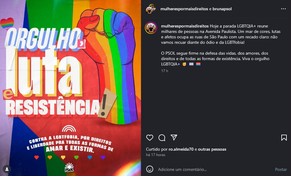 Veículo: Online -> Instagram -> Instagram Mulheres por Mais Direito