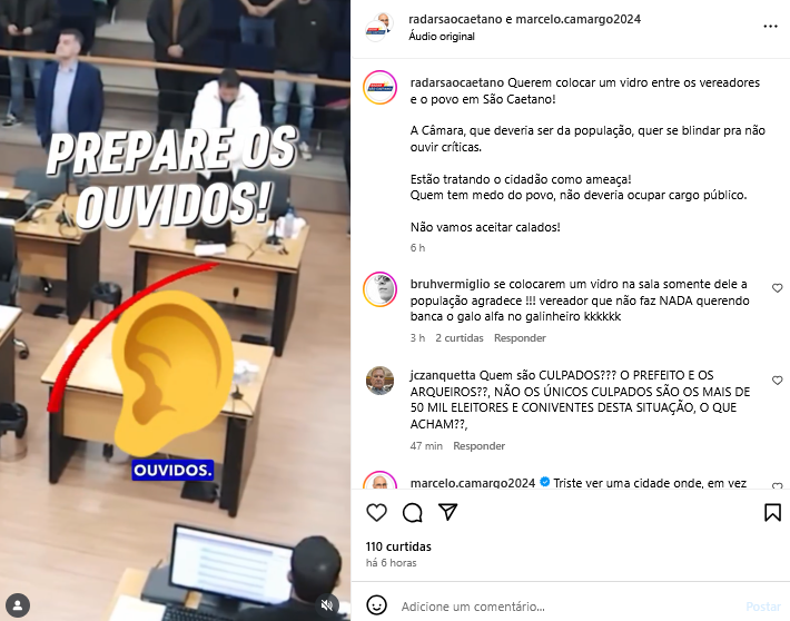 Querem colocar um vidro entre os vereadores e o povo em São Caetano!