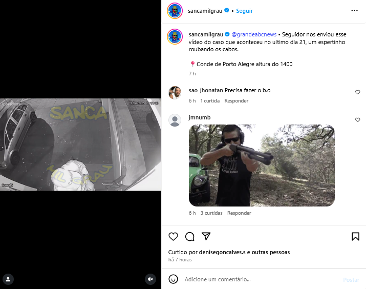 Veículo: Online -> Instagram -> Instagram Sanca Mil Grau