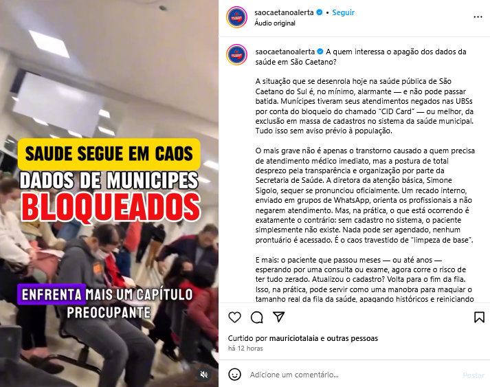 Veículo: Online -> Instagram -> Instagram São Caetano Alerta