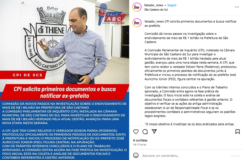 Veículo: Online -> Instagram -> Instagram Fala ABC
