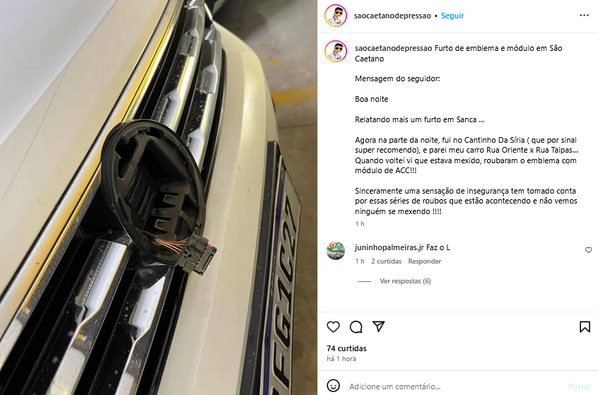 Furto de emblema e módulo em São Caetano