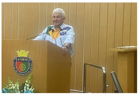 O senador Astronauta Marcos Pontes (PL-SP) recebe homenagem na Câmara Municipal de São Caetano do Sul - Fábio Zanini/Folhapress