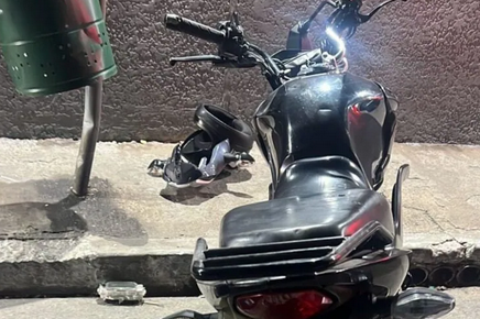 Durante o acompanhamento, uma das motocicletas colidiu contra um poste de sinalização na Rua Anny, já no município de São Paulo, após entrar na contramão de direção.
