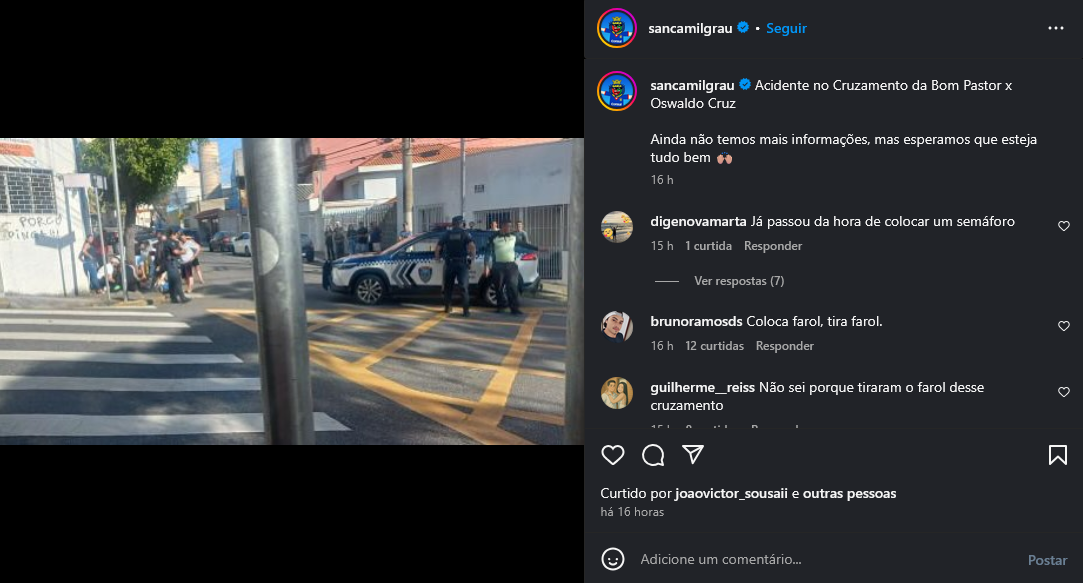 Acidente no Cruzamento da Bom Pastor x Oswaldo Cruz
