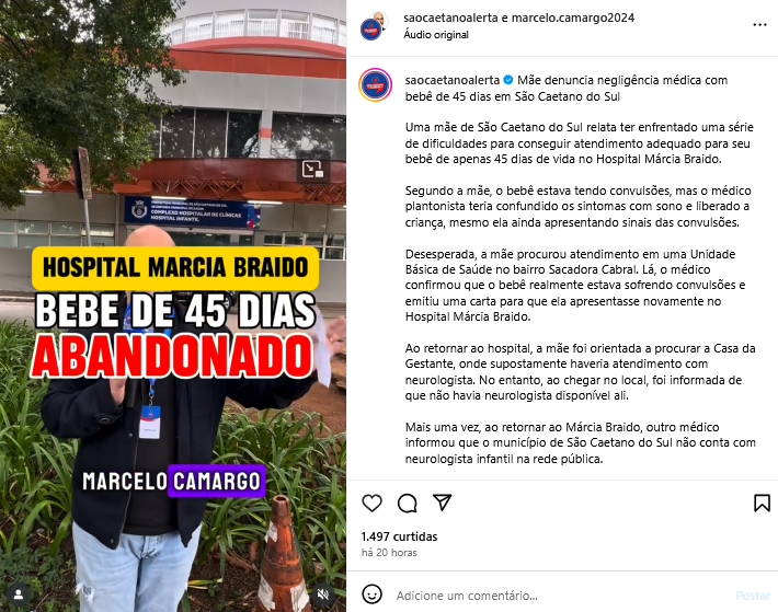 Mãe denuncia negligência médica com bebê de 45 dias em São Caetano do Sul