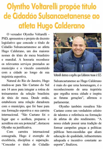 Olyntho Voltarelli propõe título de Cidadão Sulsancaetanense ao atleta Hugo Calderano