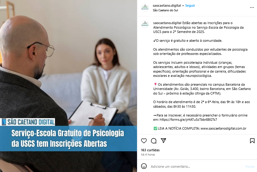 Veículo: Online -> Instagram -> Instagram São Caetano Digital