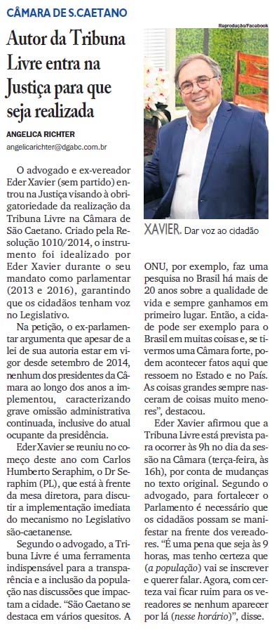 Autor da Tribuna Livre entra na Justiça para que seja realizada