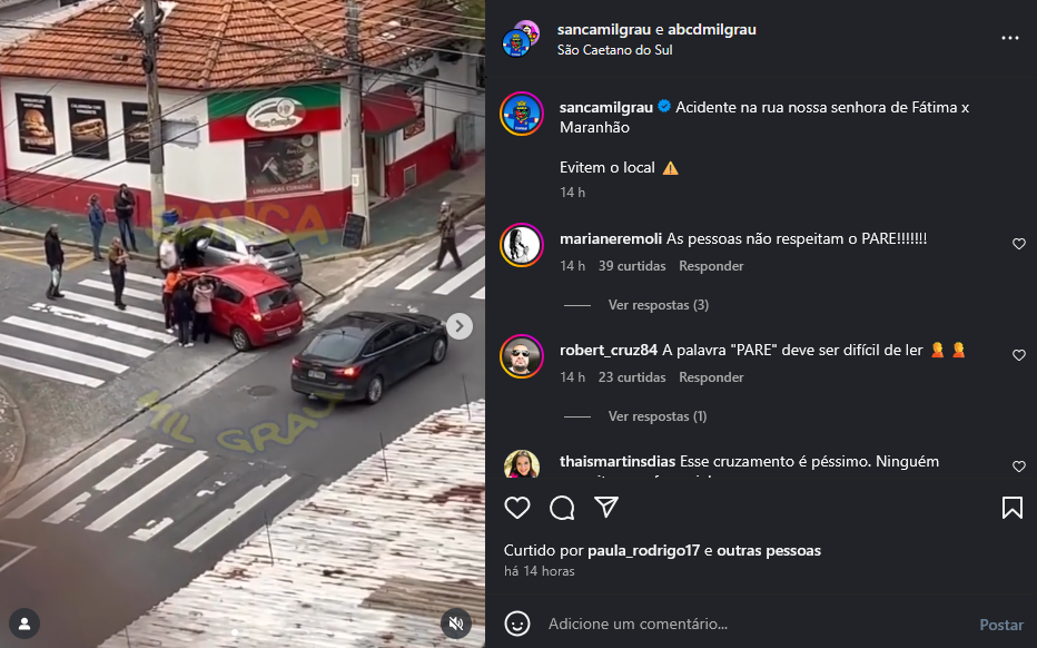 Veículo: Online -> Instagram -> Instagram Sanca Mil Grau