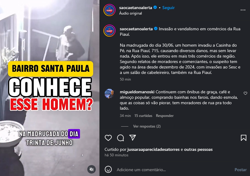 Veículo: Online -> Instagram -> Instagram São Caetano Alerta