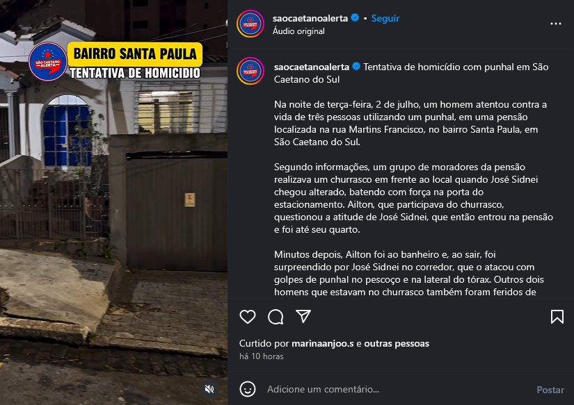 Veículo: Online -> Instagram -> Instagram São Caetano Alerta