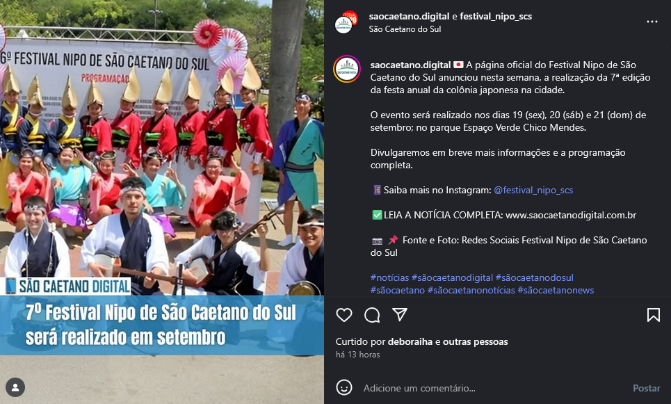 Veículo: Online -> Instagram -> Instagram São Caetano Digital
