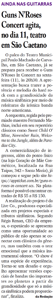 Guns N´ Roses Concert agita, no dia 11, teatro em São Caetano