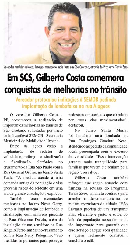Em SCS, Gilberto Costa comemora conquistas de melhorias no trânsito