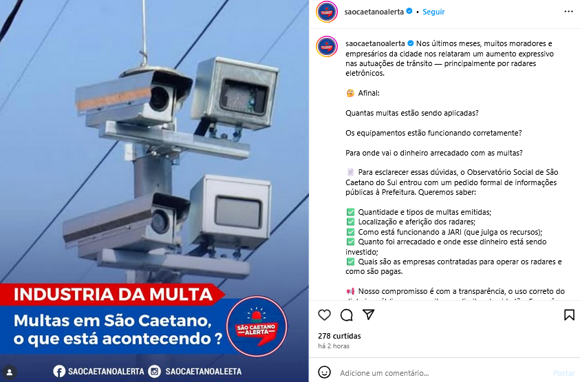 Veículo: Online -> Instagram -> Instagram São Caetano Alerta