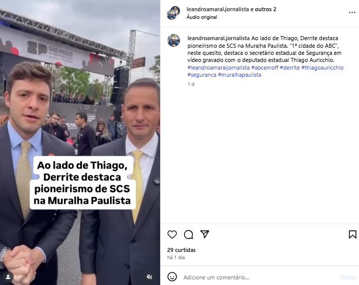 Ao lado de Thiago, Derrite destaca pioneirismo de SCS na Muralha Paulista