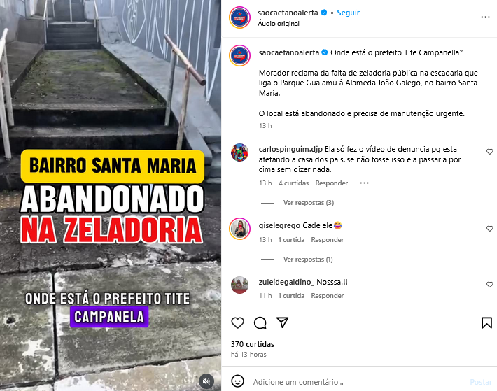 Veículo: Online -> Instagram -> Instagram São Caetano Alerta