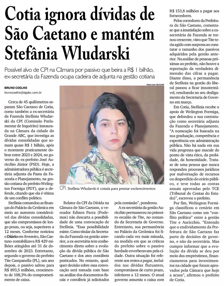 Cotia ignora dívidas de São Caetano e mantém Stefânia Wludarski