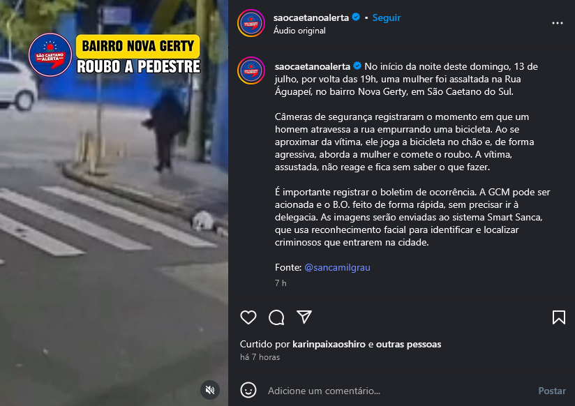 Veículo: Online -> Instagram -> Instagram São Caetano Alerta
