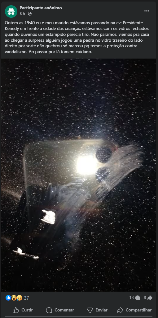 Munícipe alerta sobre ataques à carros na Avenida Presidente Kennedy