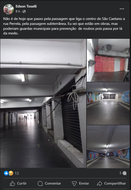 Morador sugere Guardas Municipais na passagem subterrânea que liga o centro de São Caetano com a Rua Perrela