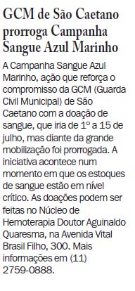 GCM de São Caetano prorroga Campanha Sangue Azul Marinho