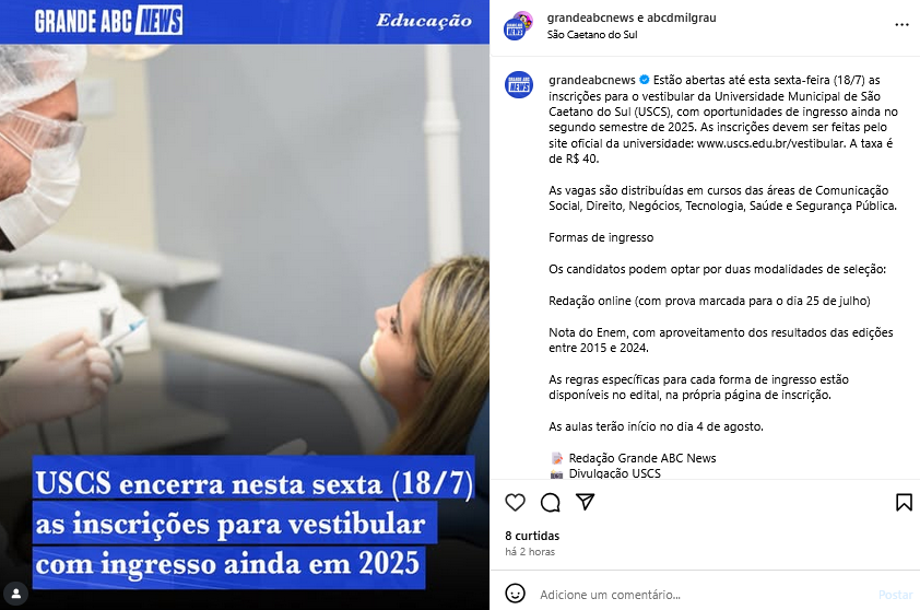 Veículo: Online -> Instagram -> Instagram Grande ABC News