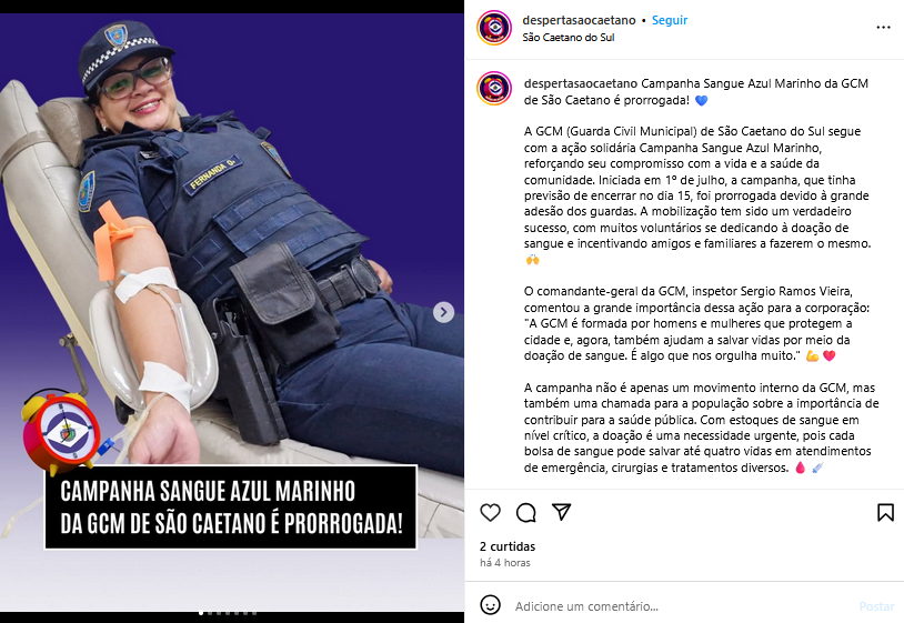 Campanha Sangue Azul Marinho da GCM de São Caetano é prorrogada!