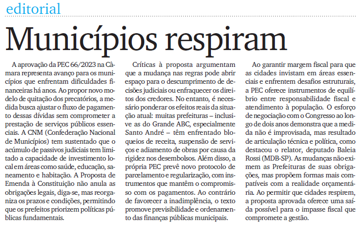 Editorial - Municípios respiram