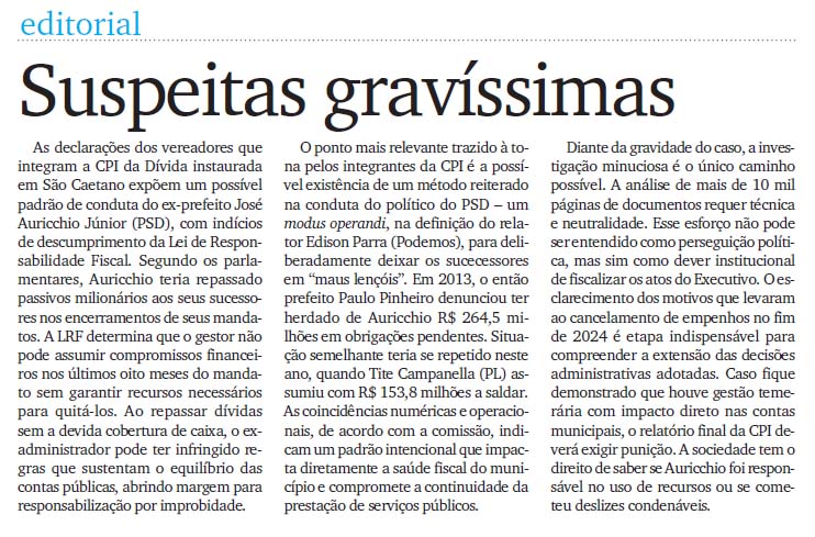 Editorial - Suspeitas gravíssimas