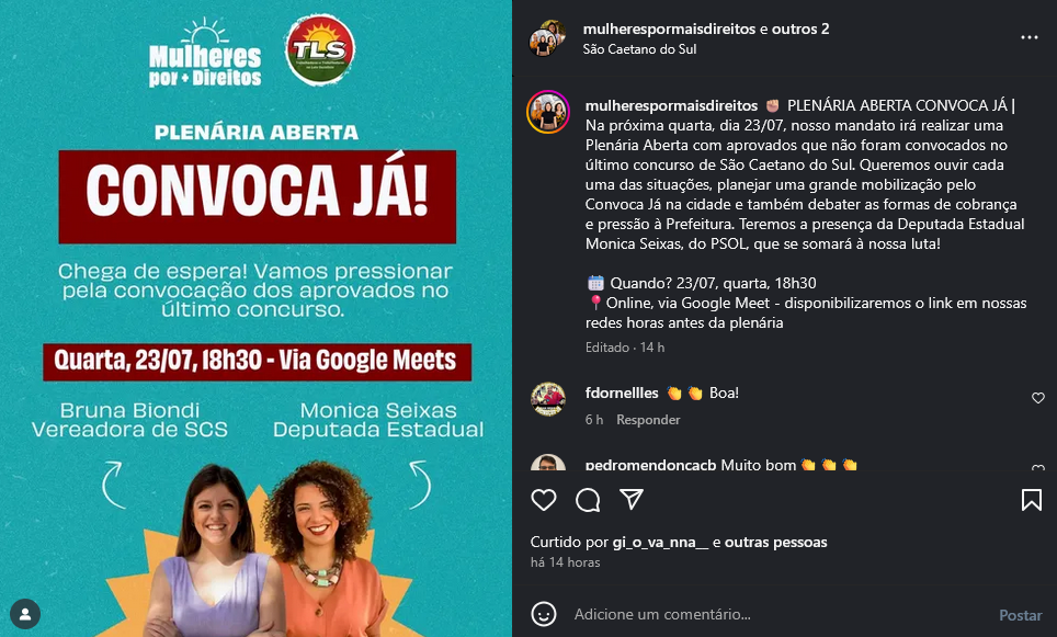 Veículo: Online -> Instagram -> Instagram Mulheres por Mais Direito