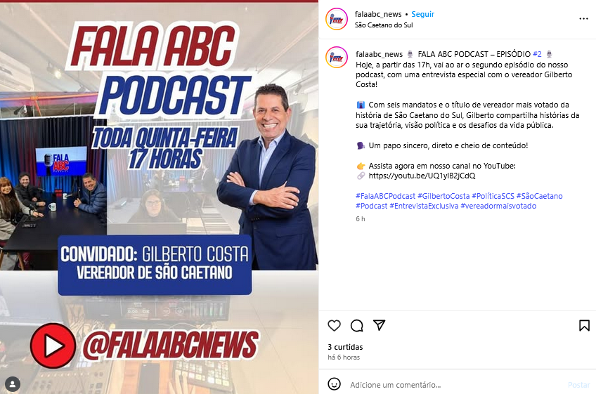 Veículo: Online -> Instagram -> Instagram Fala ABC